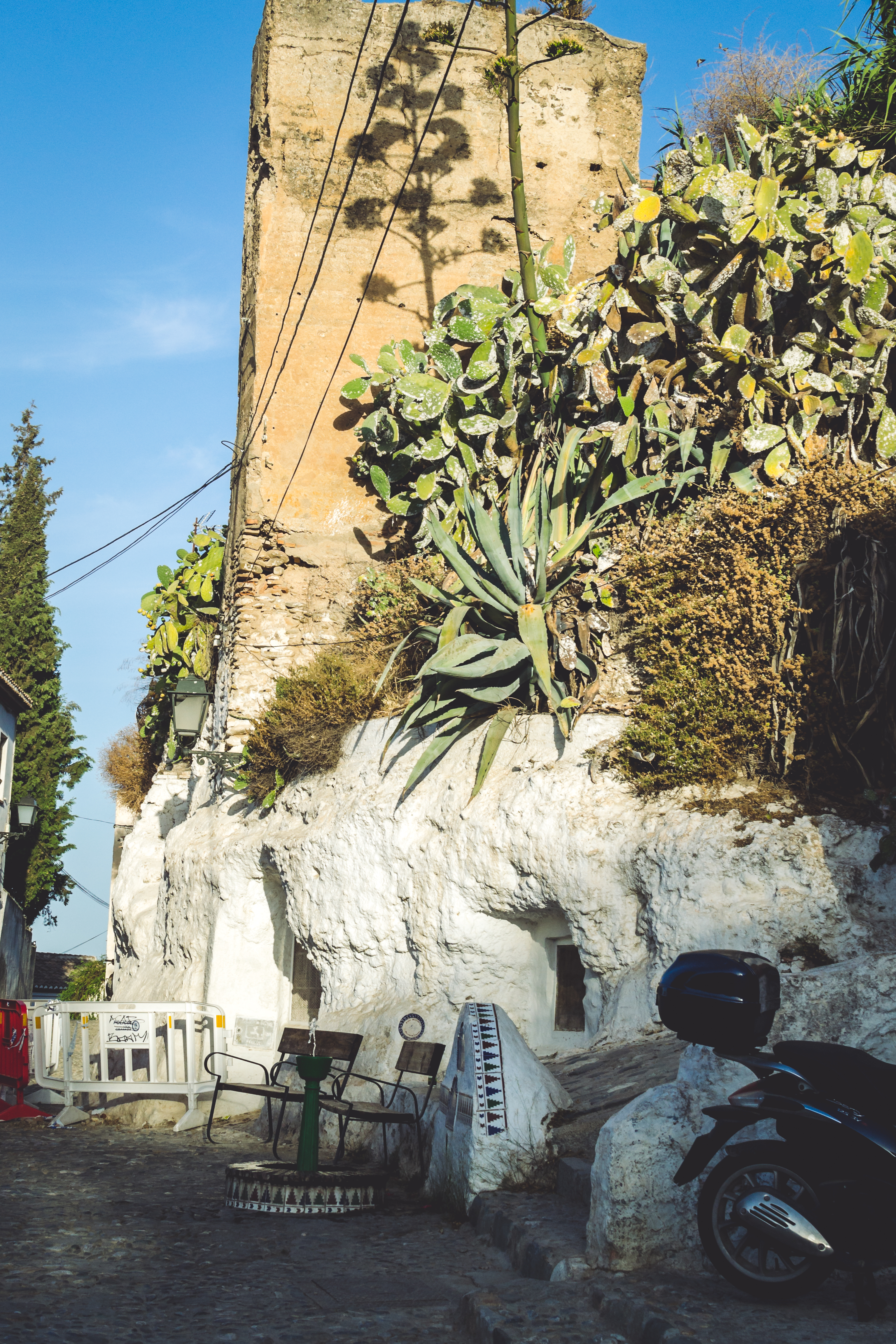 It’s a short bus ride from the city centre along steep, winding roads up to the district of Sacromonte on the city’s outskirts, where I had read about a community of people living in caves built into the hillside. The district itself is mainly a quaint suburban hamlet of small, white-washed dwellings that is renowned for its flamenco dances and association with Roma Gypsy culture due to the area becoming largely inhabited by communities of Roma Gypsies following the expulsion of the Moors from Spain in the 16th century. Roma Gypsies continued to live there even up until recent decades, but since then the majority of these caves have been transformed into modest houses filled with modern conveniences with everyday people living in them, and the perpetuation of any vibrant Roma Gypsy culture there is mostly just a show for tourists, at least from what I saw.