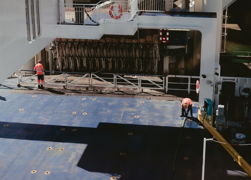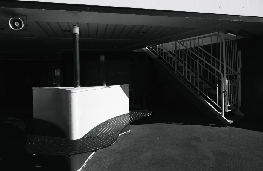 At the end of the road was a roundabout. On the other side of the junction, an emergency vehicle of some sort was parked with three uniformed persons standing around it. Despite having half a thought on asking them for directions, I didn’t pay enough attention to whether they were police or ambulance or something else to do with the port. The direction went through an industrial estate, where the entrance gates for the hanger building were located at the top of. On the other side of the gates, the engine of a white fiesta idled with its driver-side door open. I passed no one going through the industrial estate but thought I saw the hitchhiker distantly ahead of me, now without a rucksack.